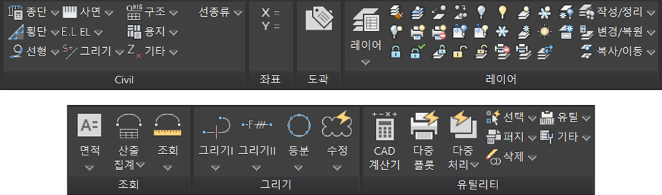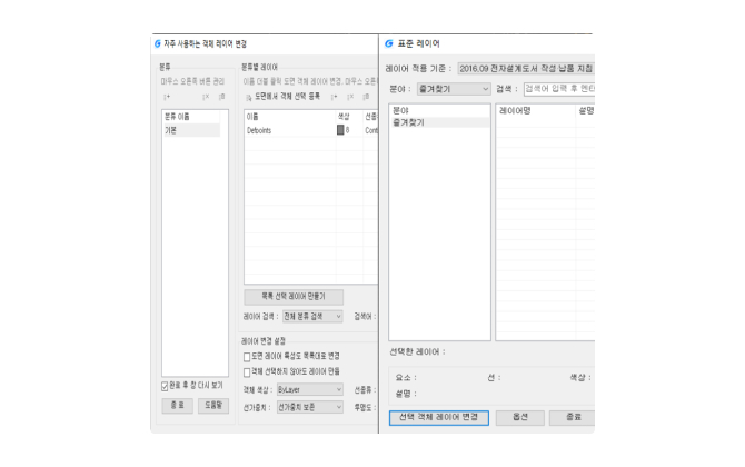 기본적인 레이어를 다루는 명령부터 여러 도면의 레이어를 일괄 처리하는 등의 수십가지 기능을 지원합니다.
