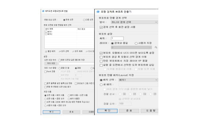 뷰포트 잠금· 해제· 동결· 색상 등 기본 기능외 모형 경계로 뷰포트 만들기 등 설계에 편리한 기능을 지원합니다.