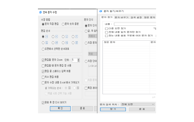 문자내용 복사· 찾기· 바꾸기· 증감· 정렬· 변경, 일괄작업 등 캐드에 없는 수십가지 기능을 지원합니다.