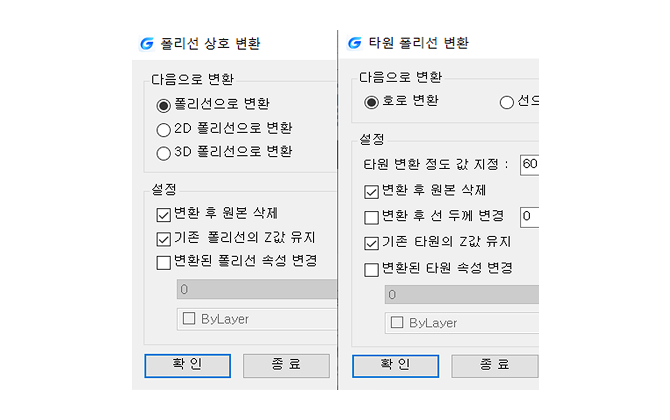 원, 호, 스플라인 등을 폴리선으로 변환하거나 방향을 바꾸거나 정리하는 기능들이 있습니다.