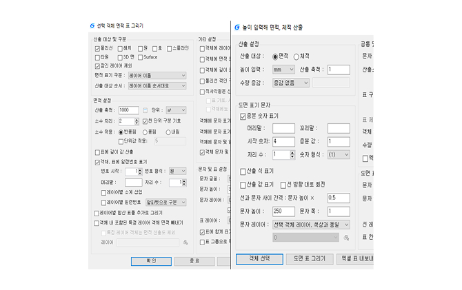 면적 및 각종 객체 길이, 블록, 문자, 해치, 색상별 수량 집계 등 복잡한 작업을 간단히 처리합니다.